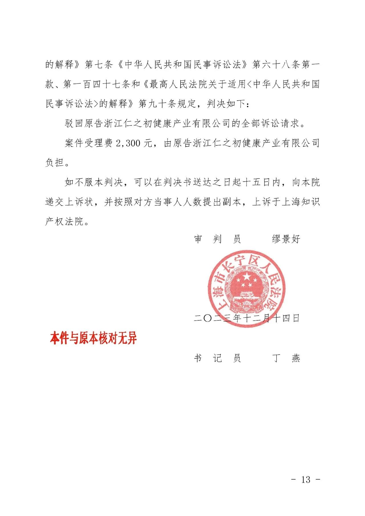 林芝辉知胜诉佳讯 | “仁之初健康”著作权及不正当竞争纠纷案,法院:驳回全部诉讼请求!